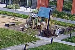 На кадрах видно лежащий на боку автобус синего и желтого цвета. Вероятно, он съехал с трассы, поскольку на снимке виден оставленный им в засохшей траве след.